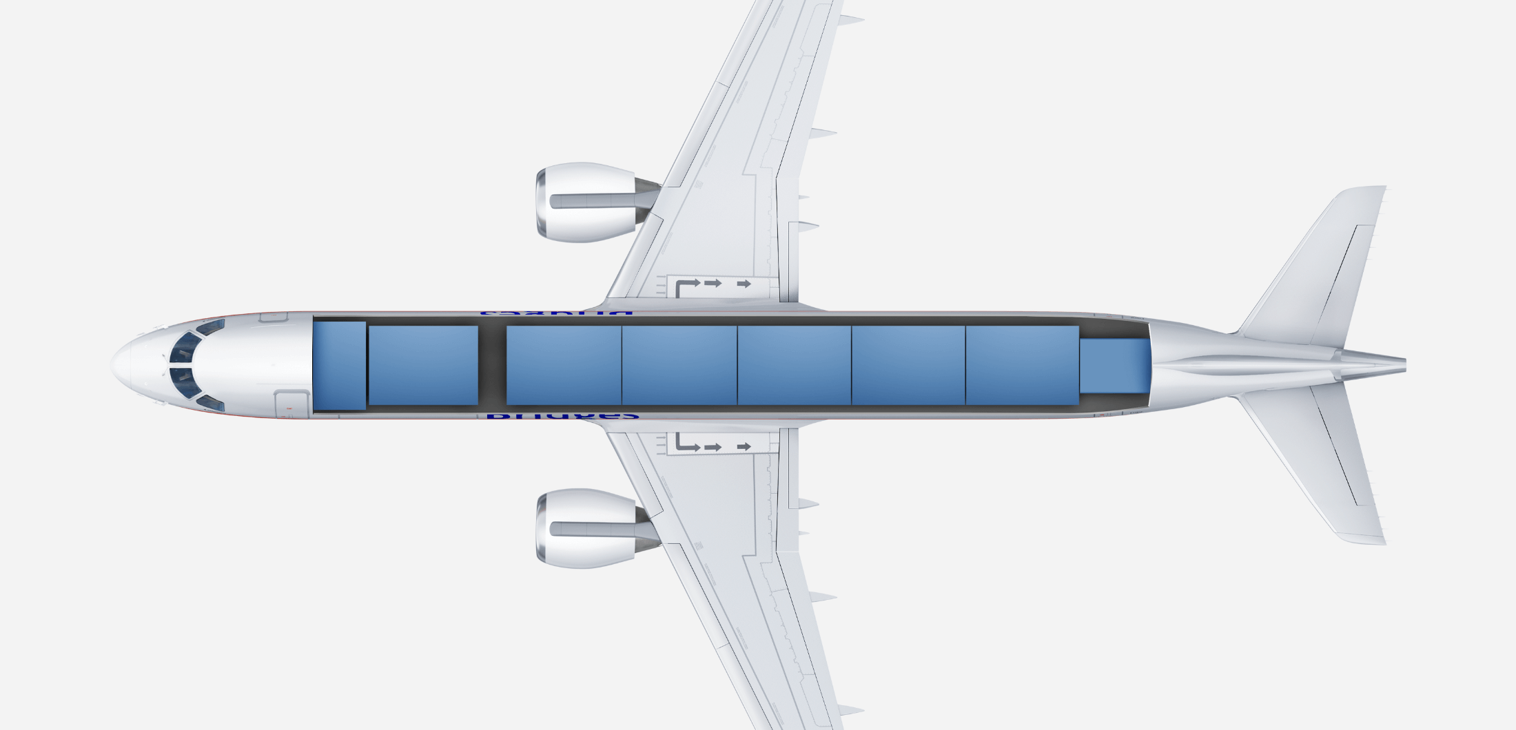 The E190F’s flexible cargo loading system can accommodate up to nine pallets and containers. It features a new large main deck cargo door and 9G rigid barrier.